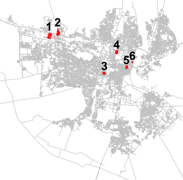 Figure 1: Six study area slums.